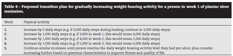 - Á¡ÁøÀûÀÎ ÀÏÀÏ Ã¼Áß ºÎÇÏ È°µ¿ÀÇ Áõ°¡ (Table 4): °üÇØ ¼±¾ð ÈÄ, Therapeutic footwear¸¦ Âø¿ëÇÑ »óÅ¿¡¼ ÁÖ´ç ÀÏÁ¤·®(¿¹: 1,000º¸)¾¿ Ȱµ¿·®À» ¼¼È÷ »ó½Â